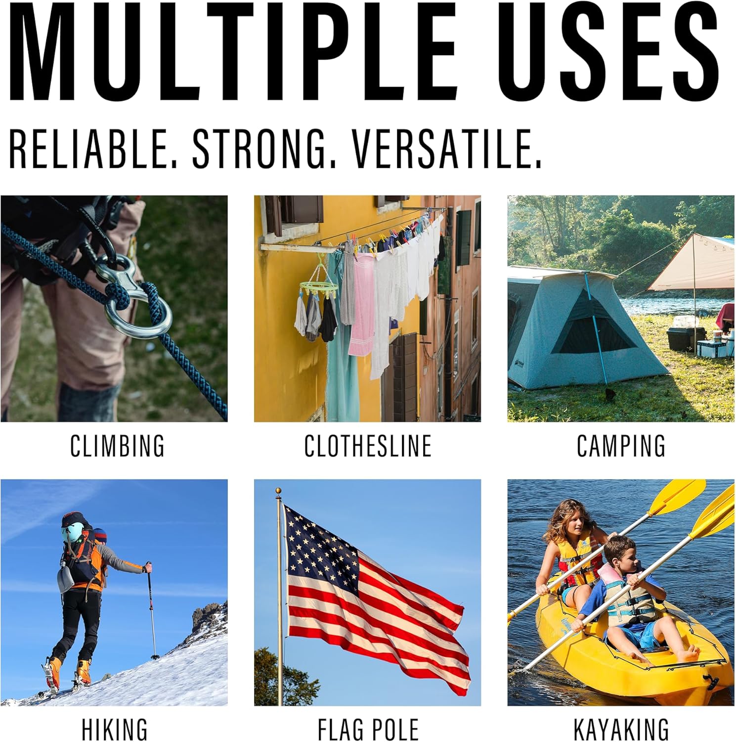 - 【Warm Tips】Knots reduce the strength of the rope up to 50%. Do not use this product for overhead lifting, support of human weight or athletic equipment or other situations where personal safety or valuable property can be endangered.