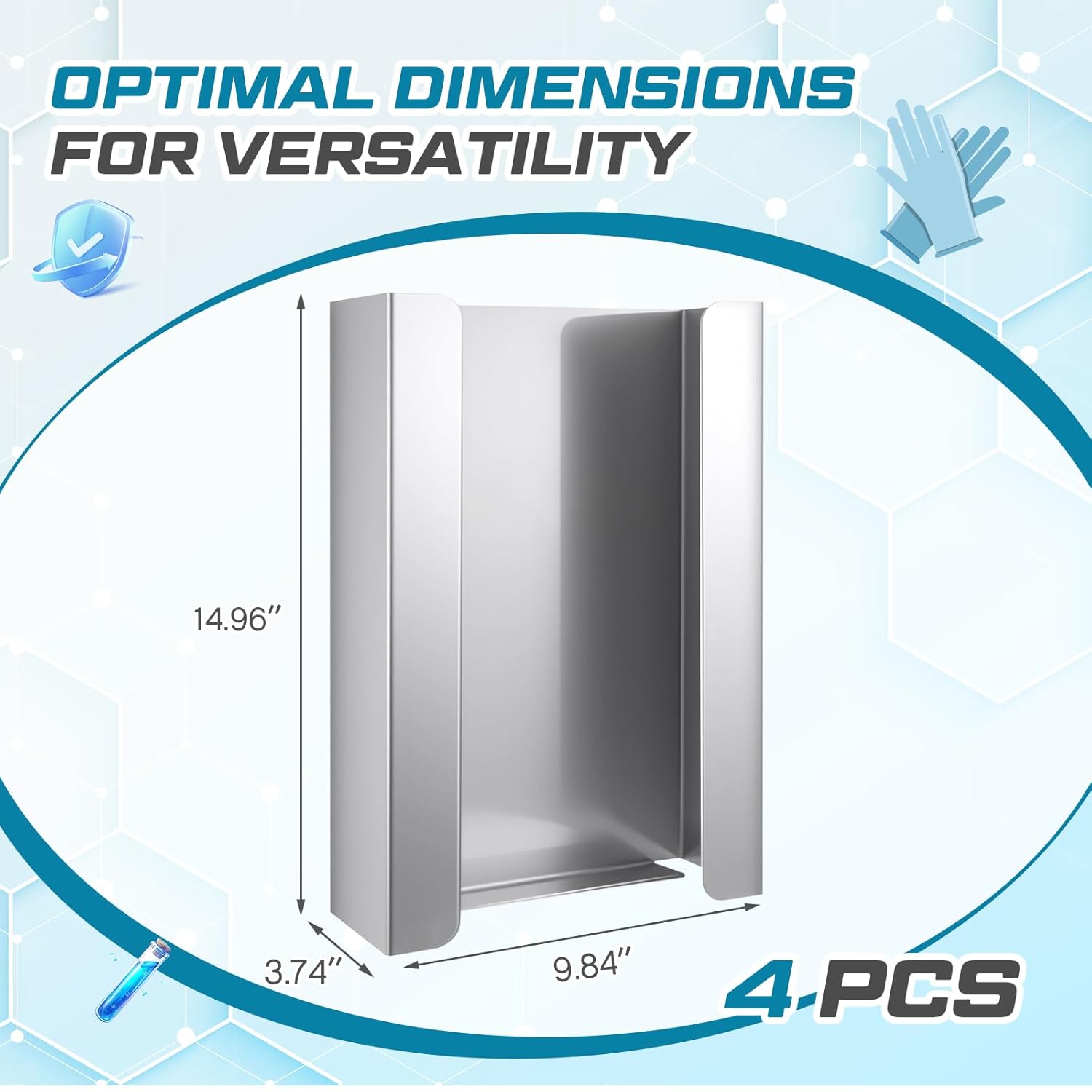 Blulu 4 Pack Glove Box Holder/Dispenser Stainless Steel Triple Wall Mounted Glove Box Organizer, 9.84" H x 14.96" W x 3.74" D