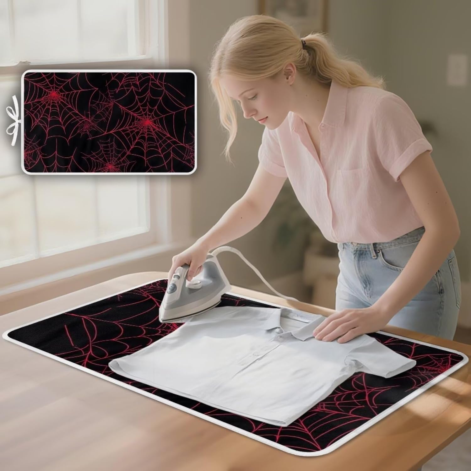 Ironing Mat Red Spider Web Portable Ironing Pad Blanket for Table Top Heat Resistance Foldable Lightweight 32 x 16 Inch Small Ironing Pads for Washer,Dryer,Countertop