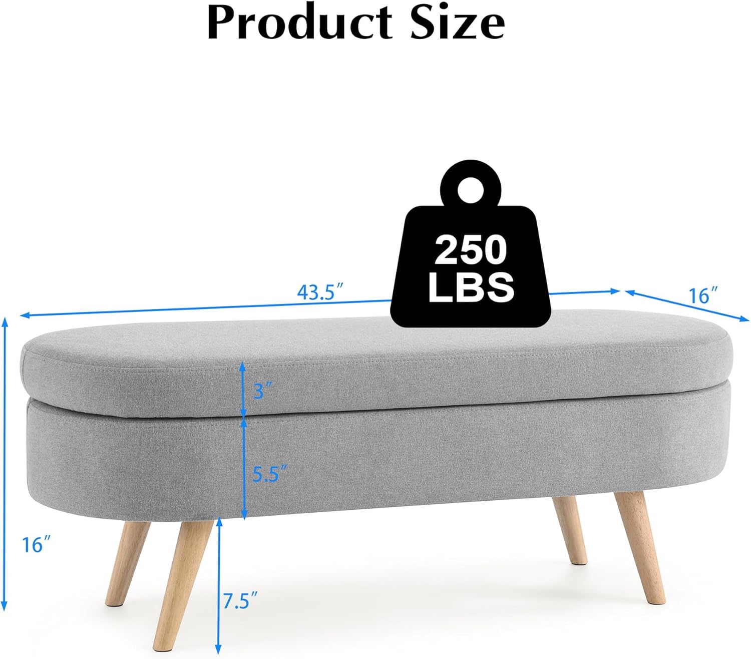 Storage Bench, 43" Storage Ottoman Bench for Bedroom, Upholstered Entryway Benches with Seating, Rubber Wood Legs, Shoe Storages Benches for Bedroom, Living Room, Entryway, Bed Side, Grey