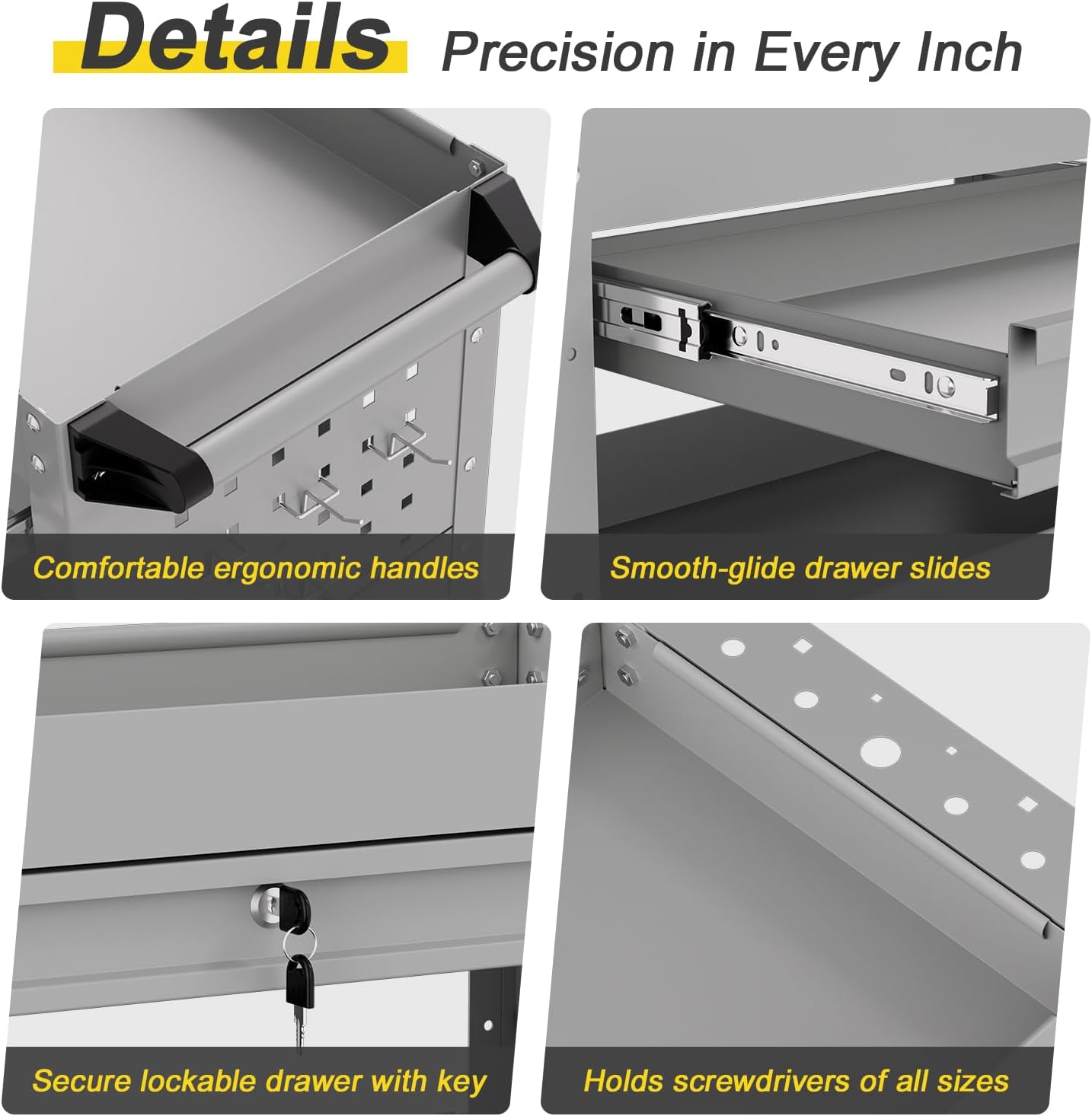 - Easy Mobility & Safety – Rolling utility cart with 4 casters (2 lockable). Smooth, quiet, and stable. Perfect rolling cart with drawers for garage, warehouse, or repair shop.