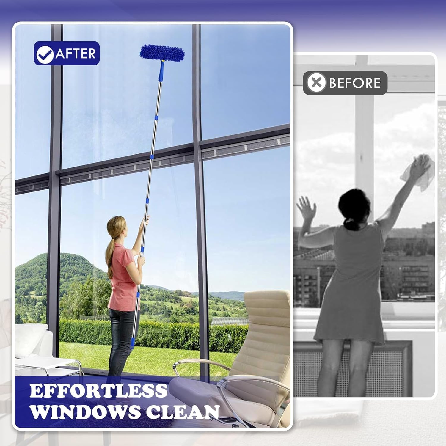 - 【11-Piece Premium Set】 The window cleaner set contains 1 x 30 cm + 1 x 40 cm puller blade, 6 telescopic rods (max. 238 cm/94in), 1 microfibre cloth & 1 Chenille pad. You can easily clean windows, mirrors and glass roofs - ideal for window cleaning professionals and households.