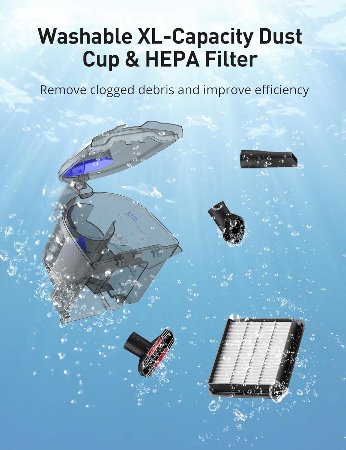 - XL Capacity Dust Cup: Don't need dust bags thanks to the bagless and washable design; 3.7QT large dust cup reduces how often you must empty it and improves cleaning efficiency compared to standard 2QT small-capacity dust cups