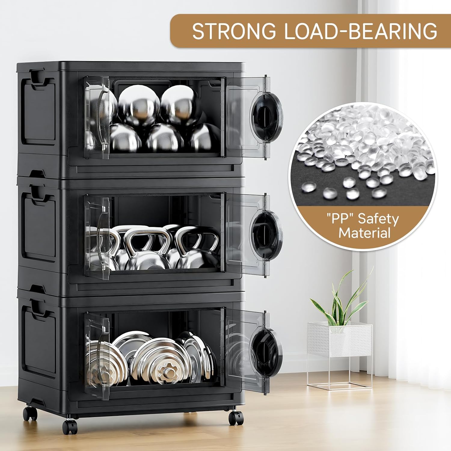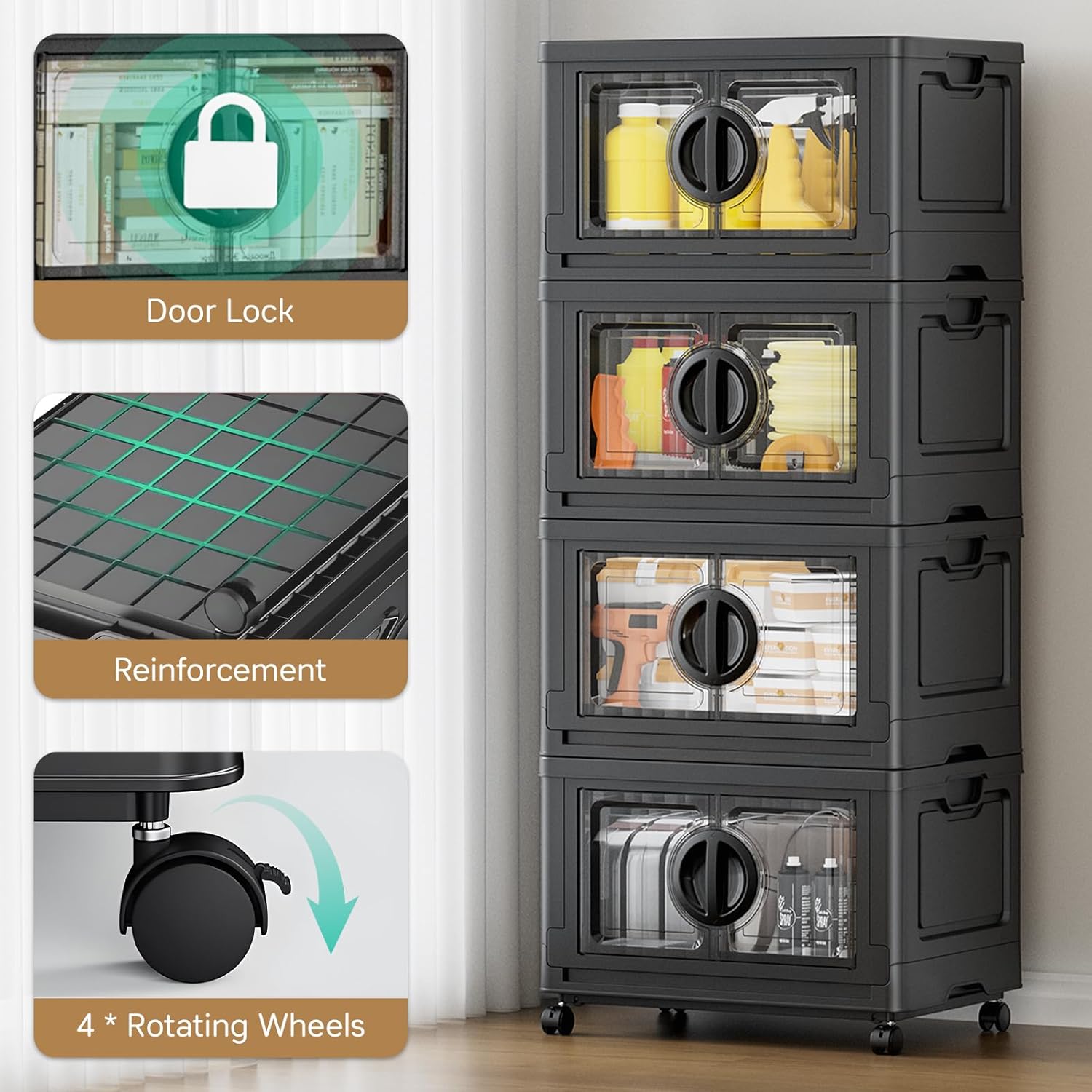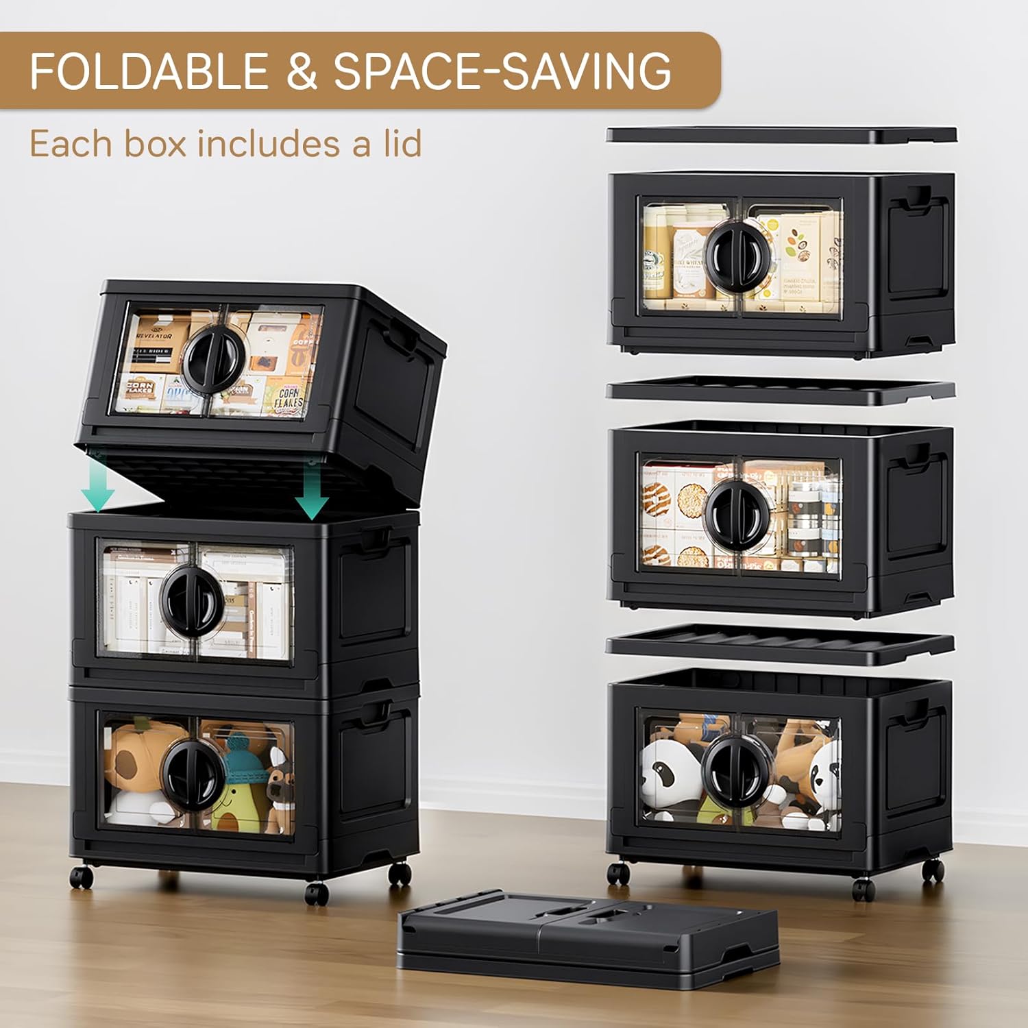 - Dual Handles & Smooth Rolling Wheels: Equipped with comfortable side handles and lockable 360° swivel wheels, this collapsible storage organizer makes lifting and moving effortless for all users