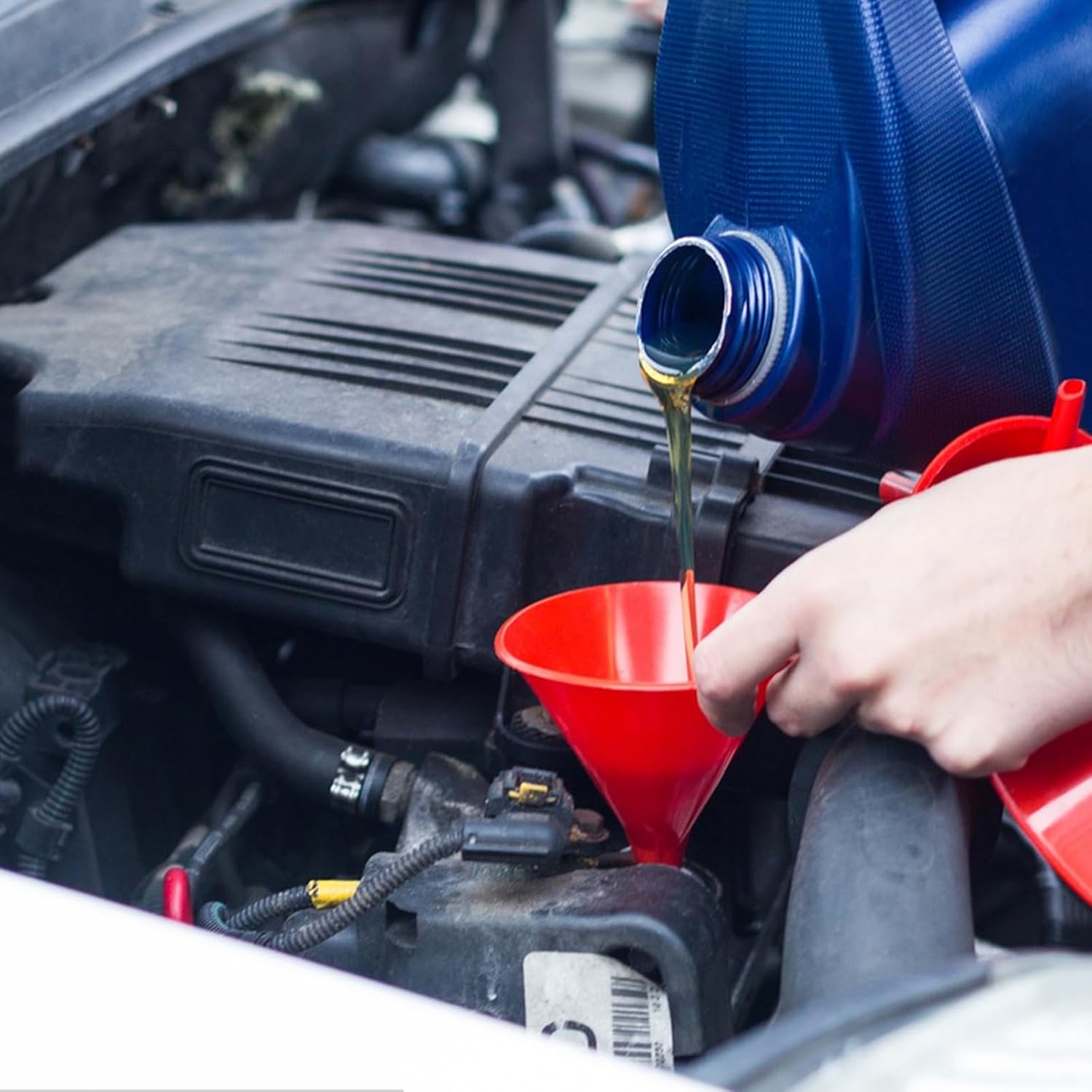 - 2 different funnels: black car funnel with filter, which can effectively remove impurities; red funnel is perfect for filling in different sizes; perfect for the kitchen or car.