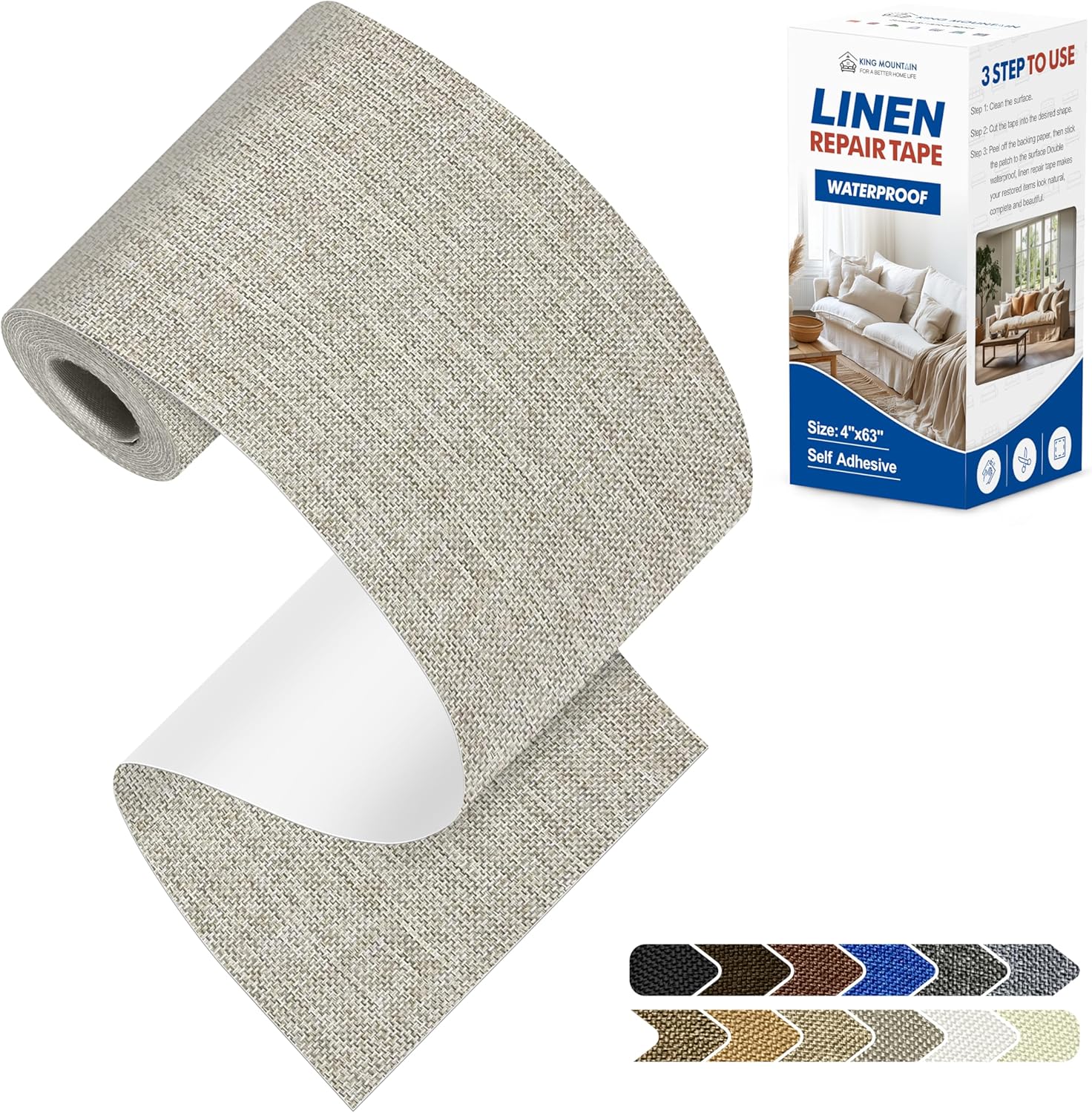 KING MOUNTAIN Linen Repair Patches, Self-Adhesive Fabric Patches, 4 X 63 inch Extra Size, Multi Color, Can be Used for Sofa Repair and Linen Clothes Repair (Cream-Gray 1.0)