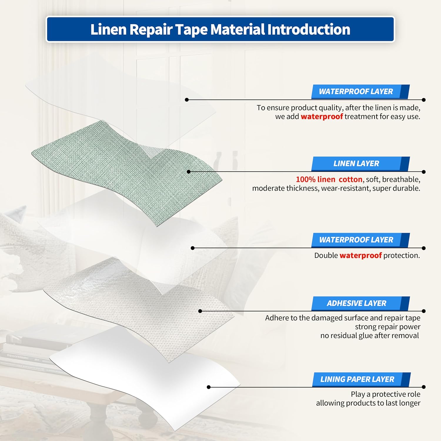 - Strong Self-Adhesive: The craftsmanship of the linen repair kit has been upgraded, using strong adhesive to ensure excellent bonding effect, specially developed for repairing various fabric products, ensuring that the repaired area can be used for a long time without easily falling off.