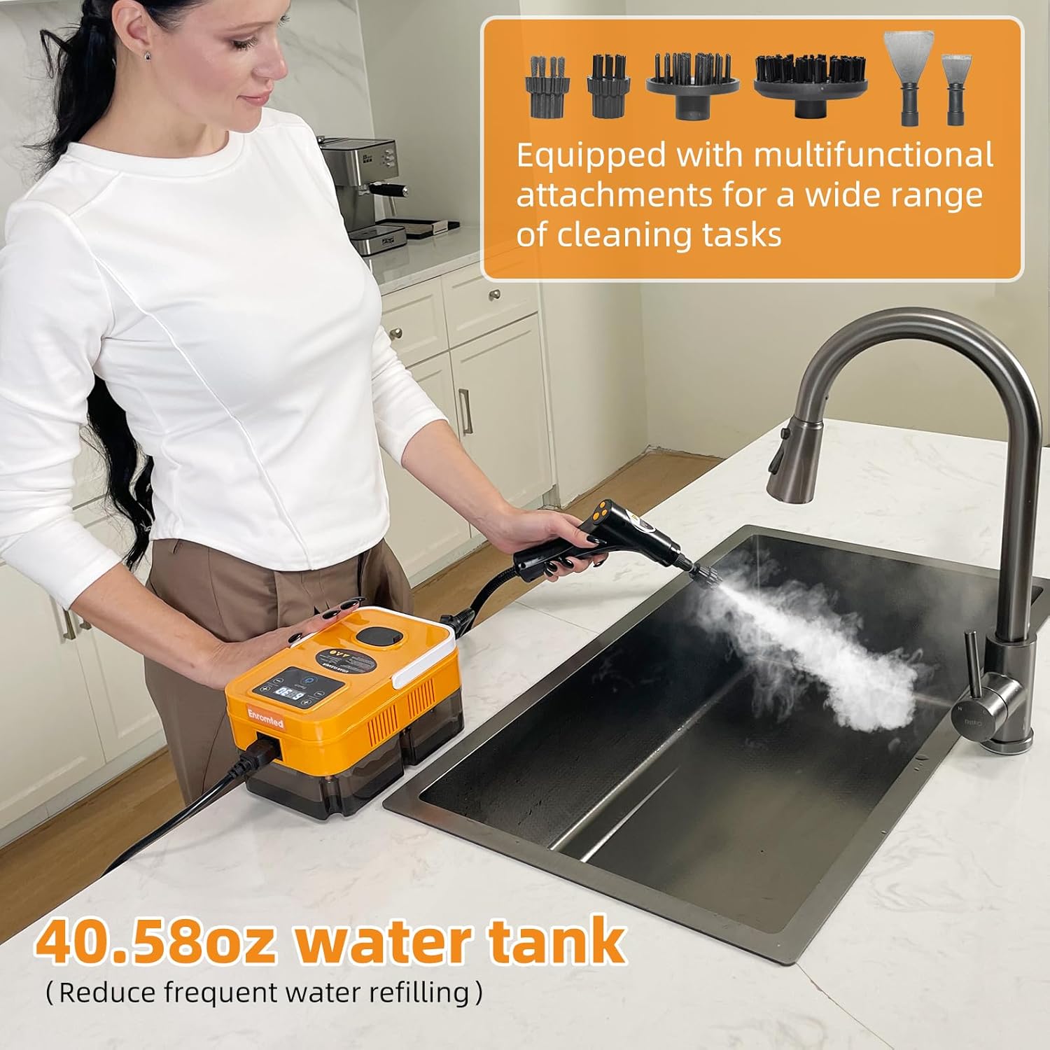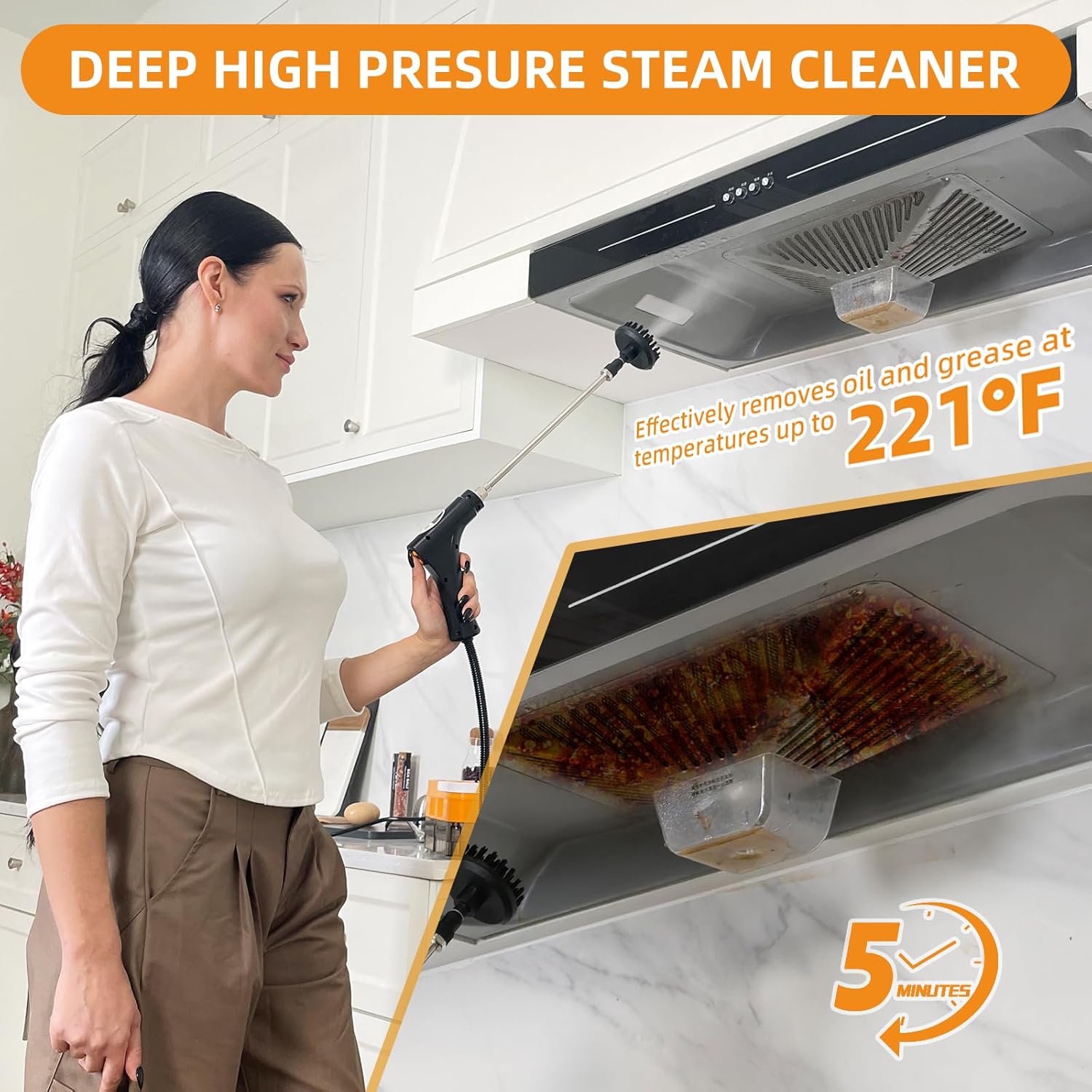 Pressurized Handheld Steam Cleaner,High Pressure Steam Cleaner for Home,6-Level Adjustable Handle,15s Heat-Up & 40.58oz Tank,Portable Steamer for Cleaning Stubborn Dirt,Grease,Tile Grout,Floor,Car