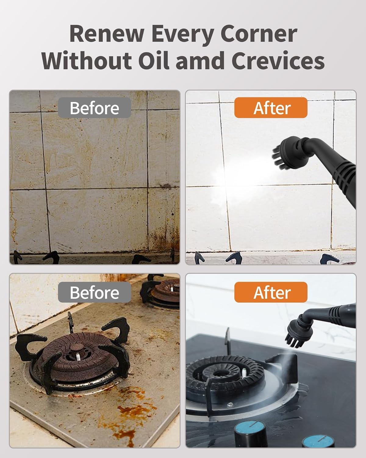 - 【Fast Heating & Efficient Steam Cleaning】Preheats in 4-6 minutes after a refill, the multipurpose steam cleaner for car and carpet and upholstery heats up rapidly to 293°F and delivers powerful hot steam with 4bar steam pressure to deep clean grease and grime in crevices