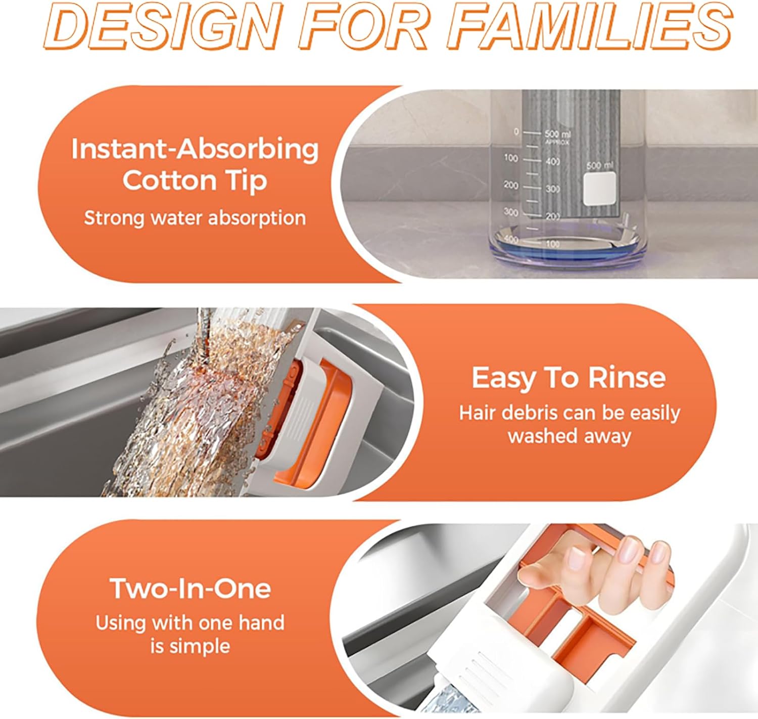 - Quick-Absorbing & Easy Wringing: Featuring a self-squeeze mechanism, this mini mop allows effortless wringing with just one touch—no wet hands or messy drips! The sponge mop head absorbs spills instantly, making it the perfect household sponge mop for quick cleanups.