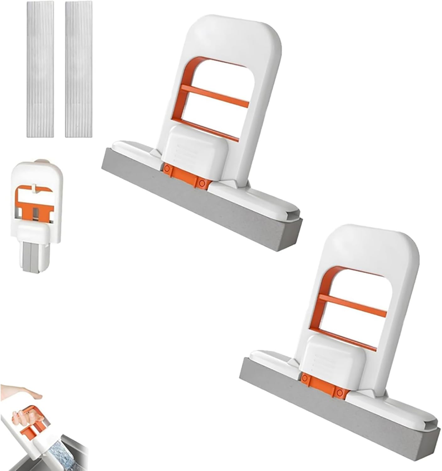 Mini Foldable Desktop Mop, Sponge Mop Wet and Dry Use Cleaning System, Self-Squeeze Small Mop for Bathroom Kitchen Desktop Glass Living Room Car (Orange, 2pcs)