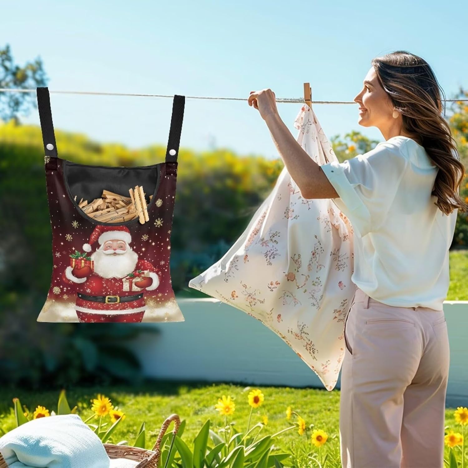 Christmas Santa Claus 2025 Waterproof Clothespin Pouch - Space-Saving Hanging Hook Bag for Holiday Laundry & Garage Storage