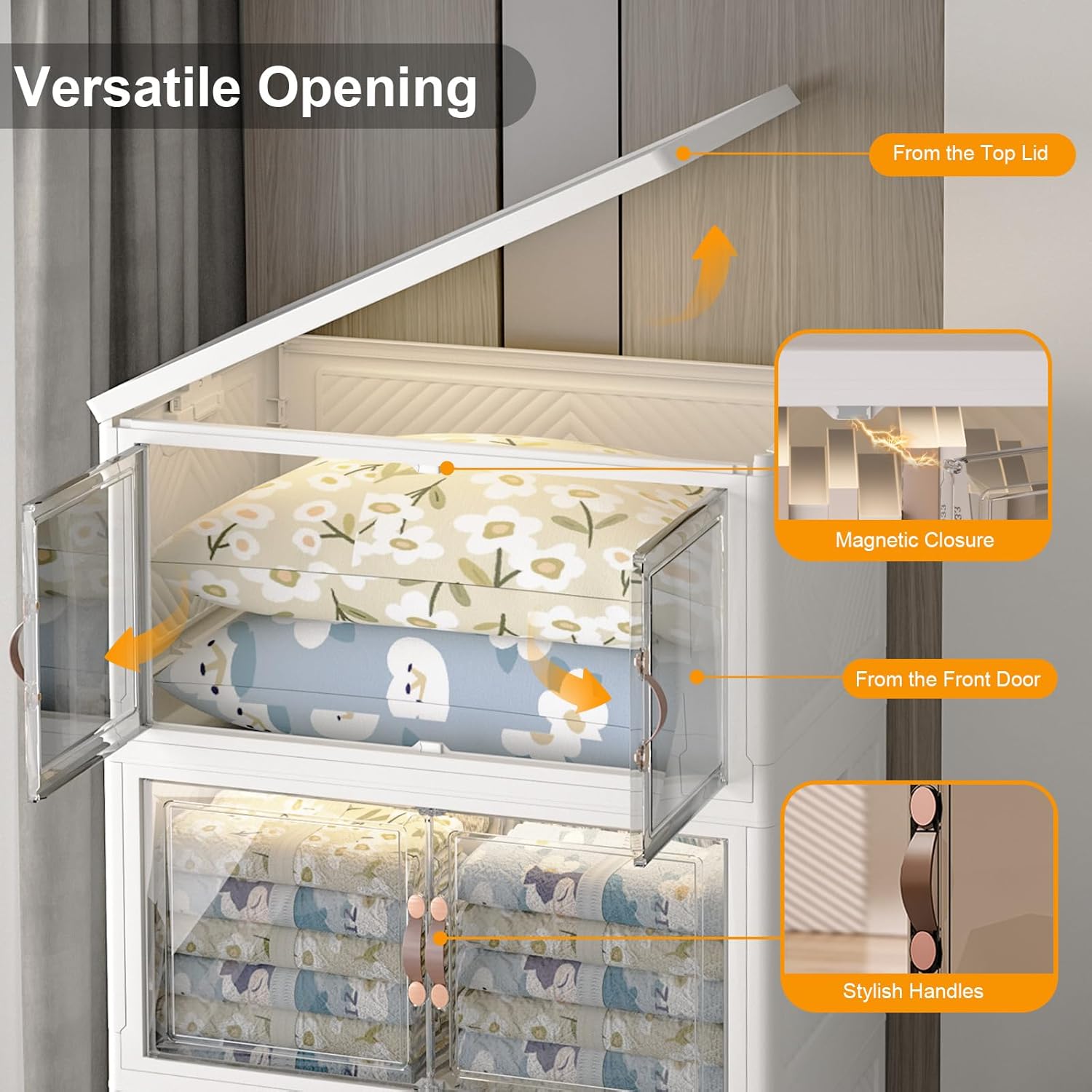 - 【Multi-Access Design for Effortless Organization】: Our versatile stackable storage bins open front offer front-opening bins for quick grab-and-go access. Use stackable storage bins with lids or stackable storage bins with doors to conveniently access items while keeping them protected and neatly contained.
