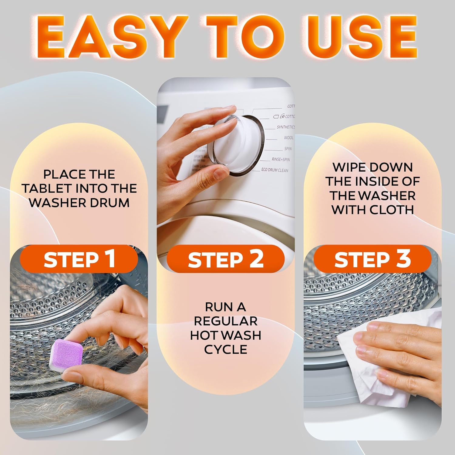 - Easy to use: This laundry cleaner for washing machines is super-easy to use in just 3 steps.Protect your washer and maintain peak performance effortlessly!