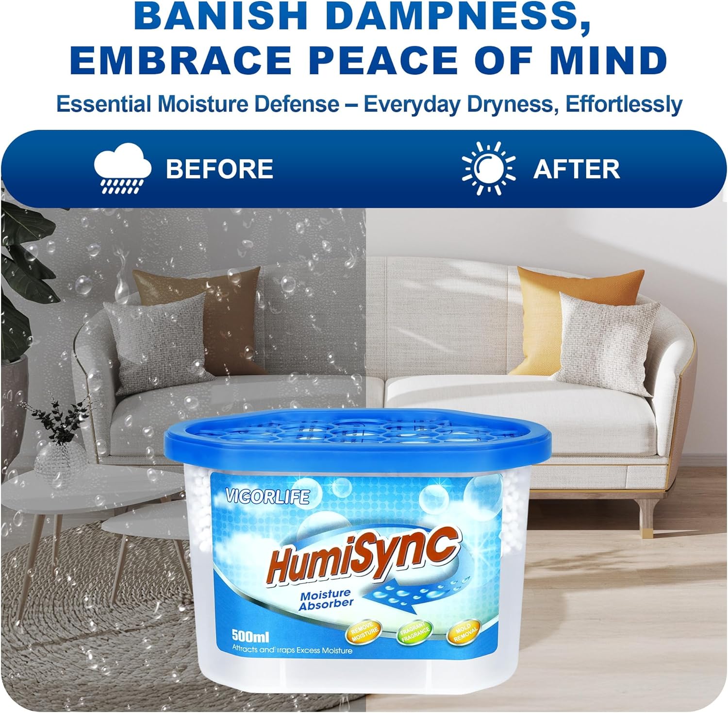 - High-efficiency dehumidification: Dehumidification boxes are a convenient and effective way to prevent the spread of moist air in your home, office or storage space. The dehumidifier is fragrance-free. The high-capacity moisture-absorbing box can create fresher air by absorbing excess moisture.