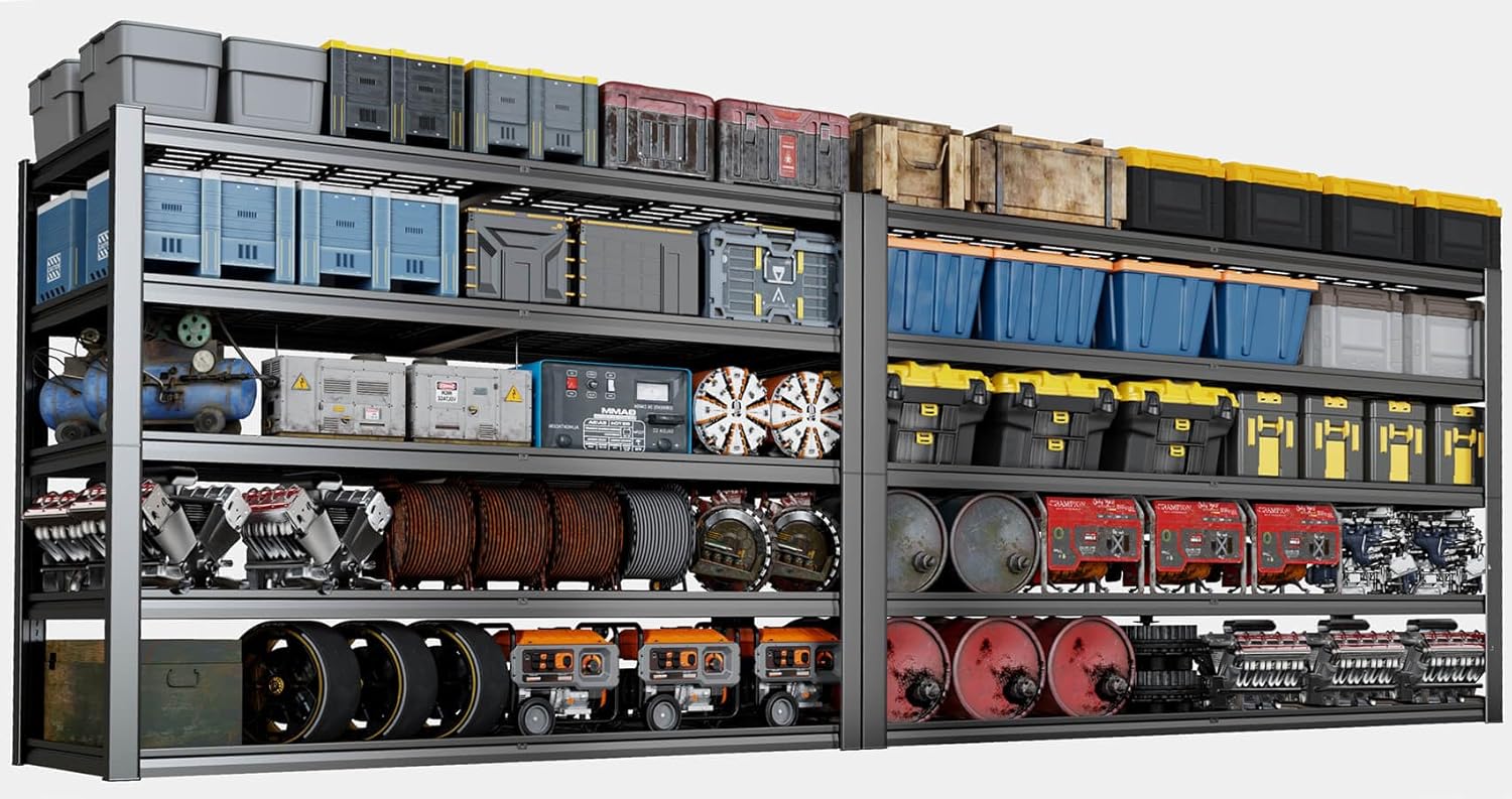 - ăAdjustable Heavy Duty Metal Shelves to Meet Different NeedsăThe height of each tier can be adjusted not only by moving the crossbar to meet the needs of different heights, but also the shelves can be assembled or disassembled into a variety of different metal shelves. The 84-inch tall 3500 lb. load-bearing garage shelves are not only strong, but they also give you more storage space.