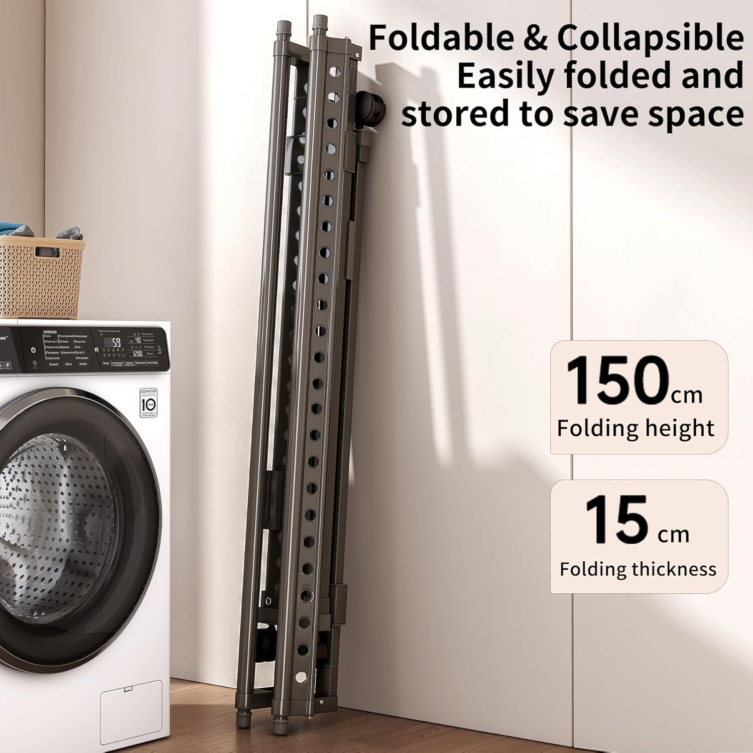 - Enhanced Drying Design with 4 Upgrades – Evenly-spaced windproof holes speed up drying, telescopic rods support multiple drying methods for different garment lengths, upgraded mesh shelf keeps sweaters flat without deformation, and reinforced crossbeam ensures stability and durability.