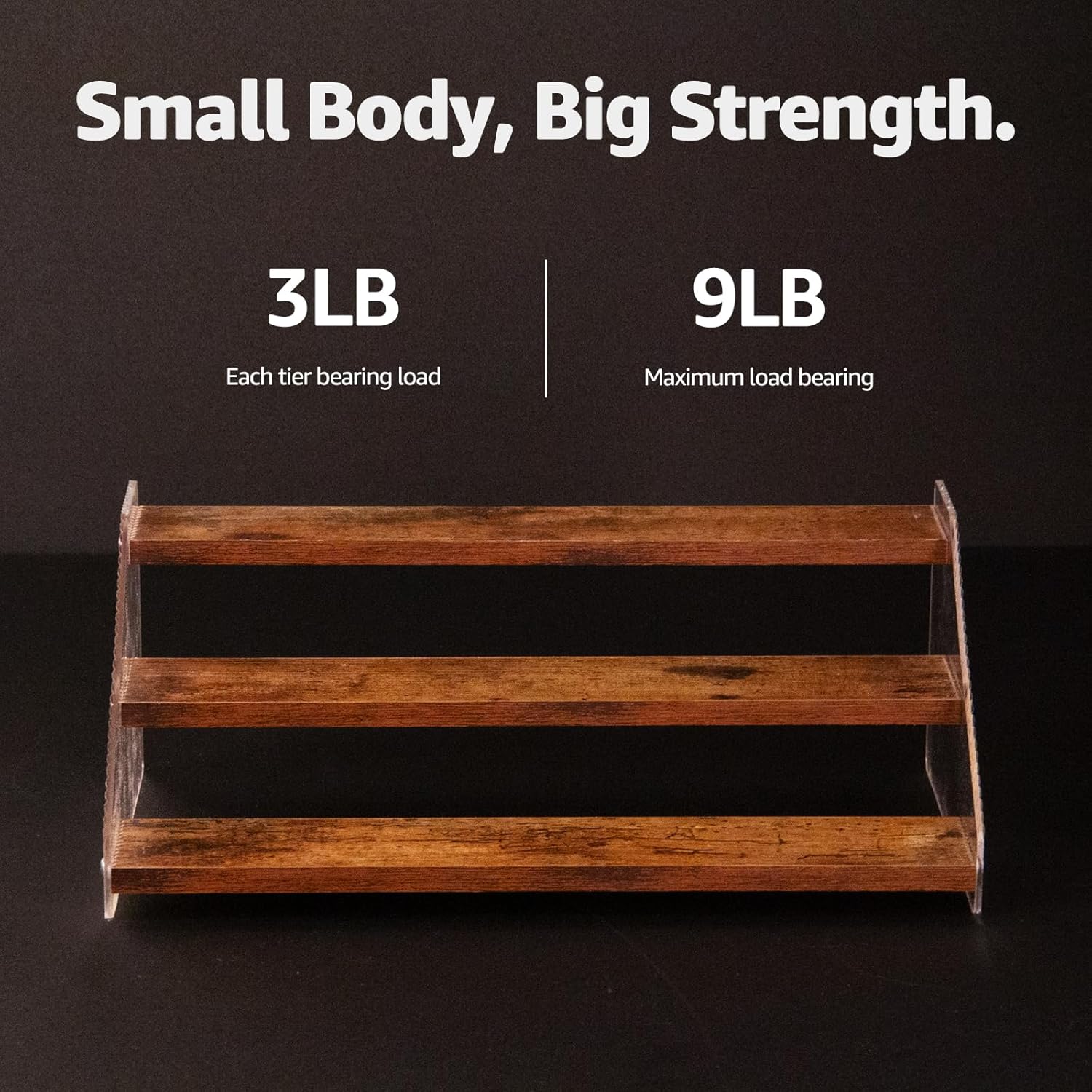 - Elegant & Sturdy: Risers display stands constructed from high-quality pine wood and corrugated acrylic, making it both aesthetically pleasing and fashionable, as well as durable and resistant to deformation, the spice shelf is a beautiful and robust addition to any space