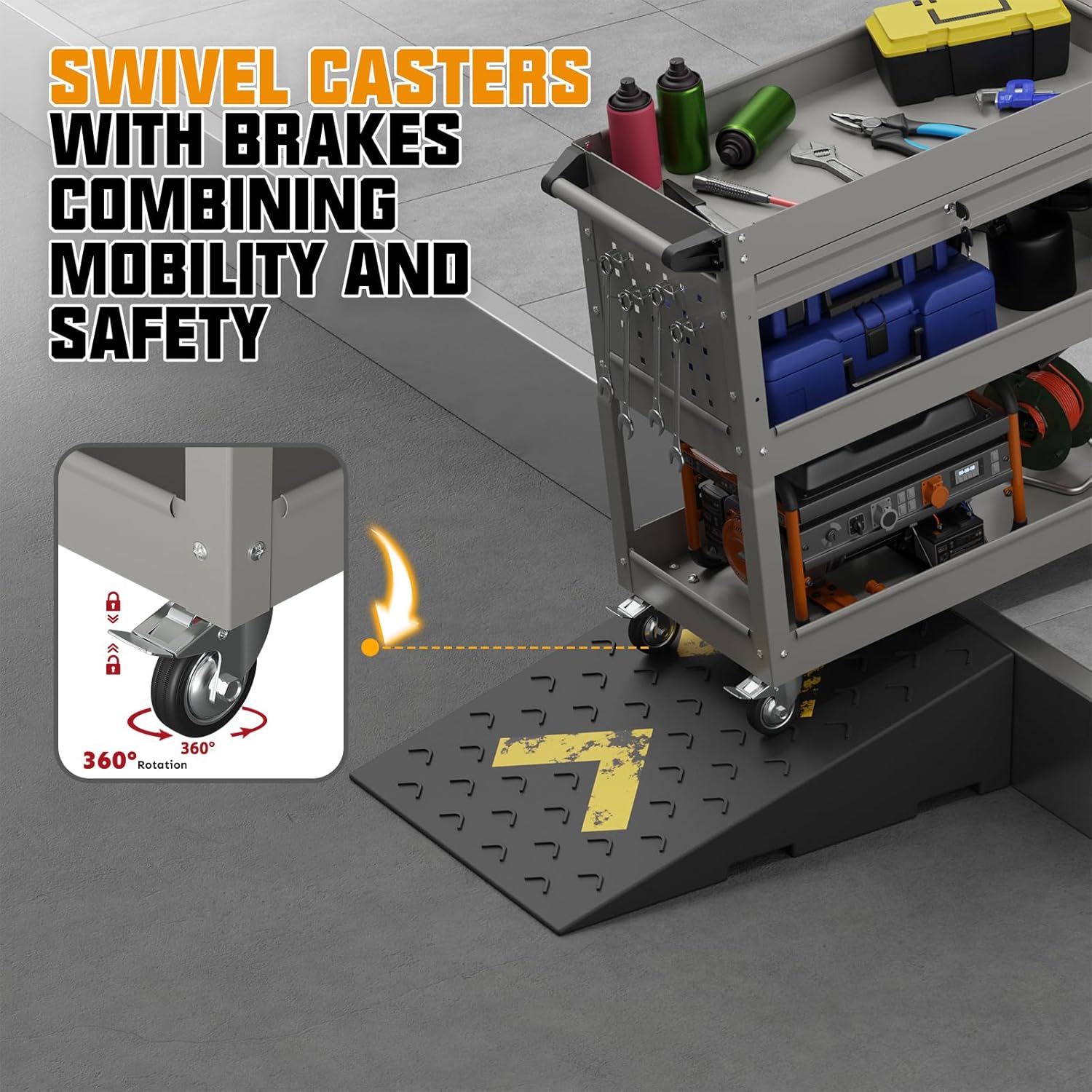 - 【Multi-functional Use】Beyond organizing tools, this cart also helps transport heavy items like tools and boxes. It’s ideal for workshops, garages, warehouses, tool rooms, and more—adapting to all your daily work or storage needs.